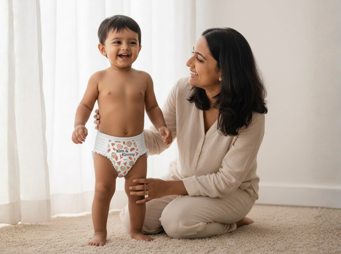Meet Kim & Kimmy — the first diaper actually built for Indian babies. 0% harmful chemicals. Breathable for our humidity. True 12-hour dryness.